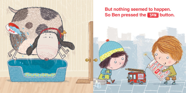 Ben has a new remote-controlled toy; it has all kinds of buttons--Up, Down, Siren, Spin. He and Bella try pressing each one, but the remote doesn't seem to be working . . . at least, not on the toy. As things go haywire on the page, Bella and Ben realize their book is out of control! With a remote on the fritz, it'll take the help of the reader to put things right in this interactive story.
