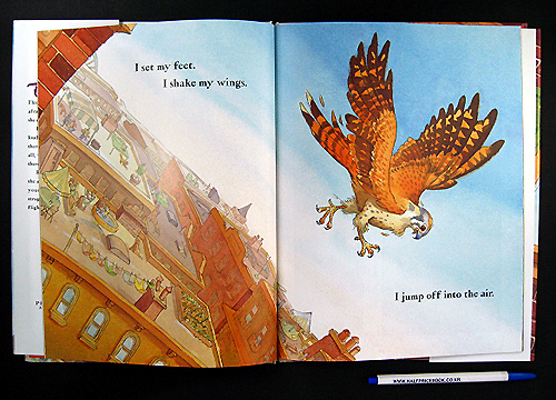City life can be precarious, even for birds! Prior to the title page, an eager kestrel peeks up at the reader and announces, "Today is the day we are all going to fly." The fearful narrator plunges from rooftop, lands on a ledge, lunges again, and finally experiences the exuberance of flight. Threatened by a hawk at Coney Island, the young kestrel escapes into a subway train. Upon exit, he's lost until he hears his family calling him home. With minimal text, it is the ink-and-watercolor illustrations that relate most of the adventure, even a few incidents not mentioned in the narrative. The kestrel's ups and downs are shown from a variety of almost dizzying perspectives. Children will identify with the kestrel's desire for independence, cheer his resourcefulness in the face of danger, and take comfort in his return home. |
