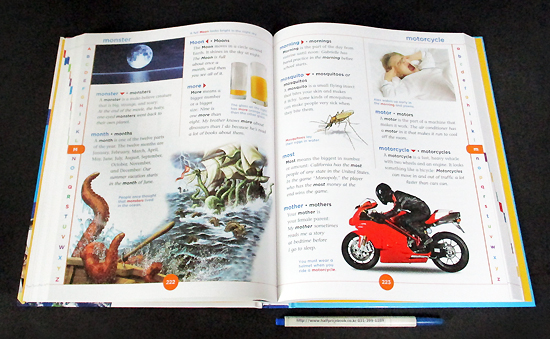 Written for use by emergent readers, this revision of the 1990 edition contains updated information (for example, on the Internet, and a current list of U.S. presidents) that makes it a useful replacement. The book features large, easy-to-read text, judicious use of white space, and more than 1400 color illustrations and photographs. Each entry includes variant forms of the term and example sentences; there are word histories for selected entries. While the dictionary contains definitions for various religious holidays, it lacks entries for the major religions. In addition to the expected guide words at the top of each page, spreads feature vertically printed alphabets on either side, with the relevant letter highlighted to ease navigation. An introduction demonstrates how to use the volume, and the book ends with a reference section, which boasts U.S. and world maps; listings of U.S. states and facts about them; the country's presidents, First Ladies, and vice presidents; and a map of the solar system, accompanied by information regarding each planet. This is a particularly welcome addition to libraries serving ESL students because the definitions are basic but they are not dumbed down.