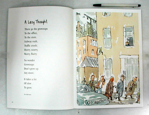 "James here collects and illustrates 19 brief poems that capture the rhythm of diverse days and emphasize the power of a child's imagination," PW wrote. "The spontaneous quality of the watercolor and pen-and-inks recalls the work of James Stevenson."