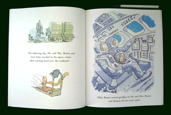 inside her tummy every night and plays music and language tapes to her baby during the day. And soon enough, Mr. and Mrs. Brains have their very own Baby Brains! He reads the paper, fixes the family car, and works as a doctor in the local hospital. Now even the space program is calling on him. Is there anything Baby Brains can¡¯t do?