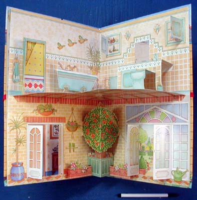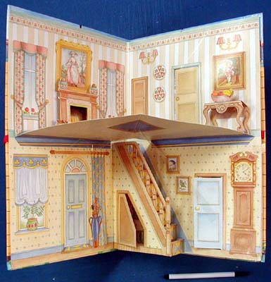 Pages pop open to create a furnished, eight-room dollhouse.