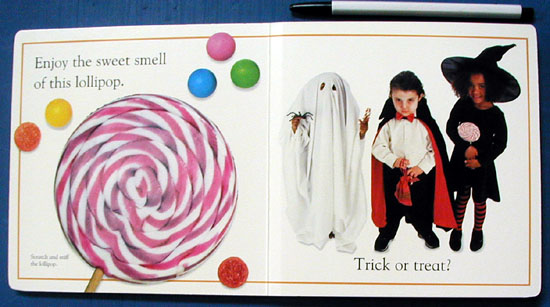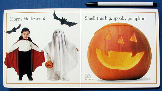 In Scratch and Sniff Halloween, a simple text and full-color photographs dare children to sniff a "big, spooky pumpkin" and "scary, skull pizza." Also available in the same format, Scratch and Sniff Christmas offers yuletide scents. |