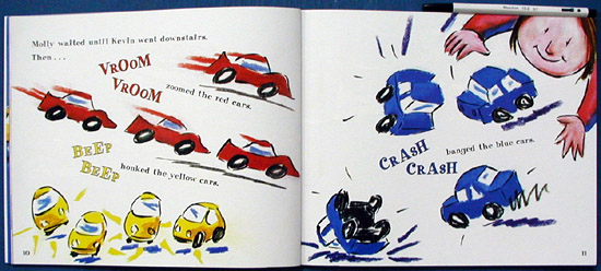 Molly loves cars. And as soon as her big brother, Kevin, leaves the room, she's ready to play with his cars!The red cars VROOM! The blue cars CRASH! And the yellow cars BEEP! And the readers learn to recognize patterns, one of the earliest and most essential math skills. Stuart J. Murphy and Chris Demarest make learning this skill a joy for every child who loves cars.