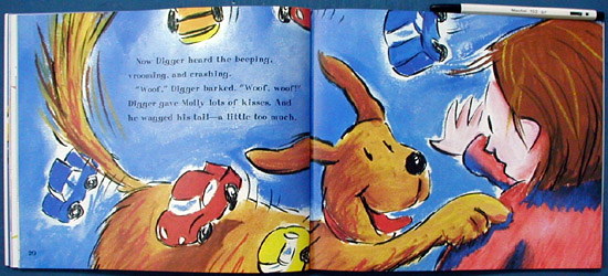 This fine offering introduces the concept of patterns. Kevin has red, yellow, and blue cars that he always lines up in a special way on his shelf. His little sister Molly wants to play, but is told she is too young. Of course, she takes a turn the second Kevin leaves the room. Overhearing the "vrooming, crashing, and beeping," Dad and Mom remind her that she must put the cars back on the shelf exactly the way Kevin left them. This allows her several opportunities to arrange the vehicles in different ways. This clever book not only gives young readers the opportunity to identify color patterns, but also has the added bonus of a repetitive story, complete with sound effects. Whenever the children play with the cars, some variation of the refrain "VROOM VROOM zoomed the red cars. BEEP BEEP honked the yellow cars. CRASH CRASH banged the blue cars" ensues. Primary-color cartoon illustrations depict the family, a playful pooch, and plenty of toy-car action. Two concluding pages provide discussion questions and activities to reinforce the math as well as a few suggestions for further reading. However, many children will enjoy this book simply for the story and the colorful pictures. |