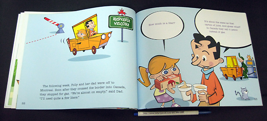 Polly has a pen pal in Canada. As she begins sending emails to her friend in Montreal, she discovers both the fun of making a friend in a nearby but still foreign country, as well as the metric system. Her father continually gives her a simple way to remember the approximate size of particular weights and measures, like a centimeter (the width of his little finger) or a meter (the length of a baseball bat). So Polly is able to tell her new friend that she is about 125 centimeters tall and weights about 25 kilograms. Polly even has a chance to travel to Montreal on a business trip with her dad and follow the directions to her pen pal's house. The story is simple but plausible, with plenty of natural opportunities to learn about the metric system. The comic strip-style illustrations complement the storyline. Polly's Pen Pal is part of Stuart Murphy's "MathStart" series, a very-thorough, leveled series of math picture books covering everything from patterns and sizes to symmetry, bar graphs and money.