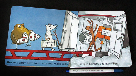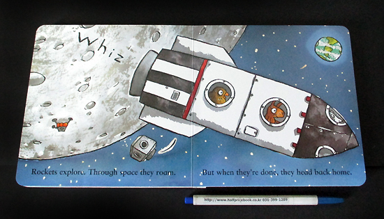Rockets have power. They rise and roar. This rocket's waiting, ready to soar. Rockets carry astronauts with cool, white suits oxygen helmets and gravity boots. Blast off with more out-of-this-world couplets! This time it is machines that fly. In bright and bold illustrations that are as witty as the text, the animal crew roars and whizzes into outer space.