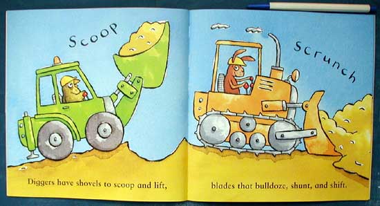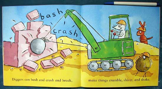 Diggers are noisy, strong, and big. Diggers can carry and push and dig. Diggers have shovels to scoop and lift, blades that bulldoze, shunt, and shift. Sloshing and squelching, and smashing and bashing, the construction machinery does its work - manned by a friendly animal gang - in this lively picture book. Young children will adore it as will the adults who get to read aloud these irresistable rhymes!