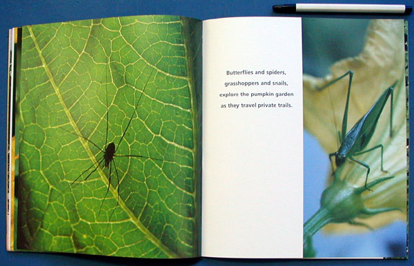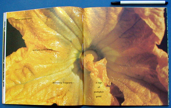 For those who have seen the charming video of the same name, this will be an unhappy example of what happens when one medium is translated into another. Those who come to this without preconceived notions, however, will find glorious full-color photographs that capture pumpkin marvels, from the mountain of golden orange delights with a girl perched on them to the gorgeous close-ups of green sprouts, feathery buds, and full yellow flowers. The singsong text is often clumsy, rhyming "seeds" with "leaves," "hair" with "appear," and "vine" with "time." The fascinating story of the growth of the pumpkin (and the pumpkin patch), from seed to jack-o-lantern, and then back, decaying, into the earth, is more fully conveyed in the pictures. (Picture book. 4-8) |