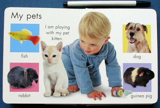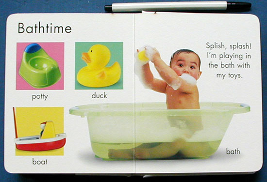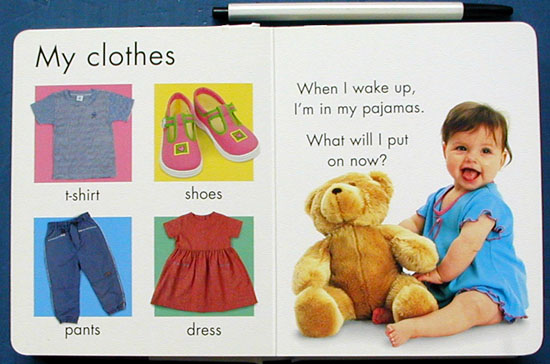 In this board book, each spread is activities and things that a baby would encounter during a few days in his or her life. There are close up pictures of body parts, clothes, getting dressed, favorite foods (although I would be surprised if the piece of broccoli depicted is really a favorite), toys, colors, pets, moving around, bathtime and the bedroom. Crisp photographs and lots of attractive items will appeal to young readers and provide plenty for child and caregiver to discuss. The book resembles those produced by Dorling Kindersley. That is not a negative but a compliment. 2001, St Martin's Press, - Marilyn Courtot |