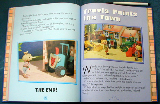 In ten adventurous stories that alternate between long and short, Bob, Wendy, and the rest of the gang spend their time getting the job done while cleaning up little messes along the way. The book kicks off with "Pilchard Goes Fishing" -- in which Bob's "clever" cat starts pawing around for Finn -- and heads into "Lofty to the Rescue," featuring the blue crane who winds up rescuing Spud when he gets caught on a branch. "Bob's Bugle" has the builder constantly tooting his new horn, which gets accidentally crushed and becomes a perfect gift for Wendy's housewarming present, and Travis gets a bit road-marking crazy after Spud plays a nasty trick in "Travis Paints the Town." The book's other stories are just as playful and busy, and each is marked with a different icon at the bottom to help young readers find their place in a snap.