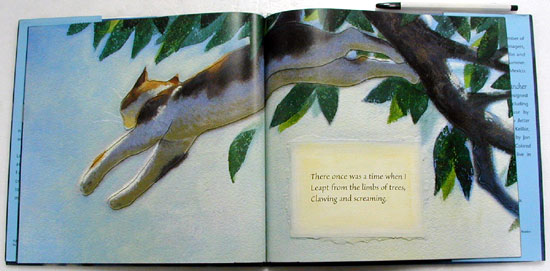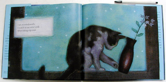 Soft, luminescent illustrations created with string and oil paints on textured paper highlight this pleasant, though unexceptional short poetic description of a cat's multifaceted personality-docile pet by day, untamed beast in dreams, adventurer by night. The double-page images are carefully crafted and artistically presented. The only jarring element in this eye-pleasing package is the placement of text in boxes of pale color that often contrast too sharply with the deep twilight shades against which they are set. Alice Schertle's I Am the Cat (Lothrop, 1999) is a short volume of descriptive verse, humorously illustrated, that young cat lovers will relish. |