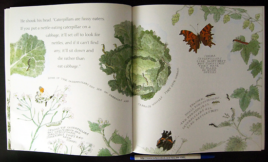 A little girl watches caterpillars growing, first in her grandfather's garden and then on her windowsill. Through observation and Grandfather's answers to her questions, she learns firsthand about caterpillars' development and conveys to readers the wonder of it all. Written in first person, this picture book will captivate children who share the girl's love of nature and interest those who simply want to know what happens next. Simple in line and restrained in color, Voake's ink-and-watercolor artwork has an ingenuous quality that suits the story well. Written for the Read and Wonder series, this book will be in demand each spring when preschool and primary-grade teachers request books on the subject. |