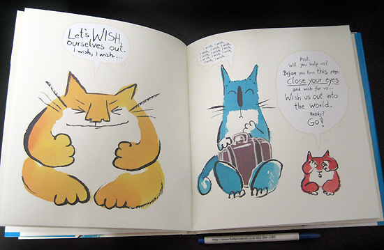 Our lovable feline friends Tiny, Moonpie, and Andre have returned, and this time they¡¯re filled with the spirit of adventure: they want to go off to explore the world! They have their suitcases packed and are ready to set out, but can¡¯t get out of the book. They try pushing their way out and jumping their way out, but nothing seems to work. Finally, they get a brilliant idea: they decide to wish themselves out! But they¡¯re going to need help. Will it work? Are you missing them yet?