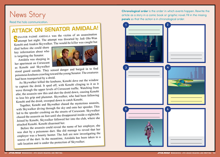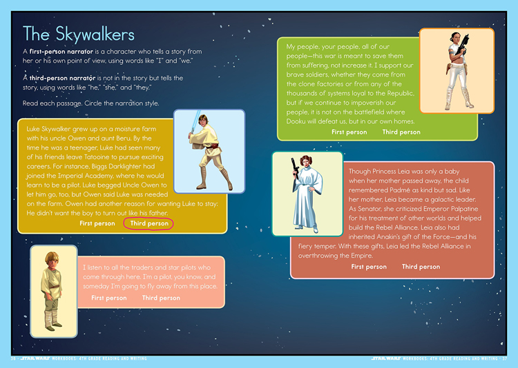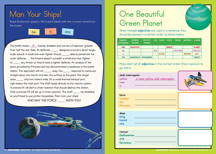 Make learning an intergalactic adventure! From the creators of BRAIN QUEST and from the iconic world of Star Wars, 4th Grade Reading and Writing is 96 full-filled pages of curriculum-based exercises and activities. It reinforces key reading and writing skills, including prepositional phrases, dialogue, recognizing fragments and run-on sentences, reading comprehension, and more.