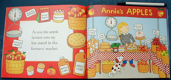 Apple cider, applesauce, apple muffins, cakes, and pies! Annie is avery busy apple farmer. She bakes yummy treats with the apples she picks and saves her best apples to sell at the market. Follow Annie through her apple- filled day of picking, counting, sorting, baking, and selling, and then try making some of her simple apple recipes.