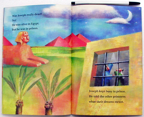 The Bible story has been greatly simplified, but the essence of the story is still intact. Joseph, the beloved youngest son, suffers at the hands of his jealous brothers, but manages to overcome all with the help and guidance of God. He forgives his brothers and saves the people of Egypt and his own family during a period of great famine.