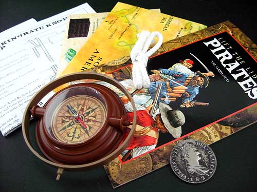 Explore history through the fascinating lives of real pirates! This kit includes a fully illustrated booklet, a pirate ship model to construct, a museum-quality replica gimbled compass, pirate bounty stickers, and more! |