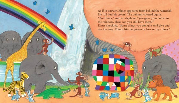Package includes a paperback copy of Elmer and a mini-book, Elmer and the Rainbow.