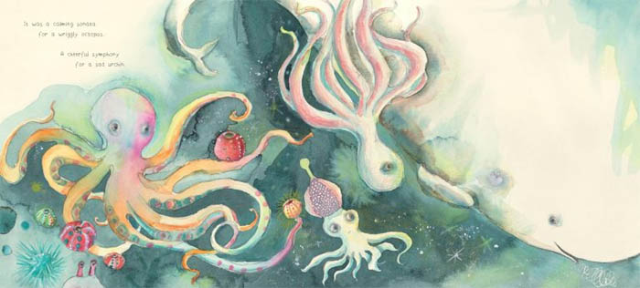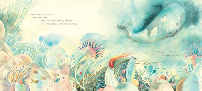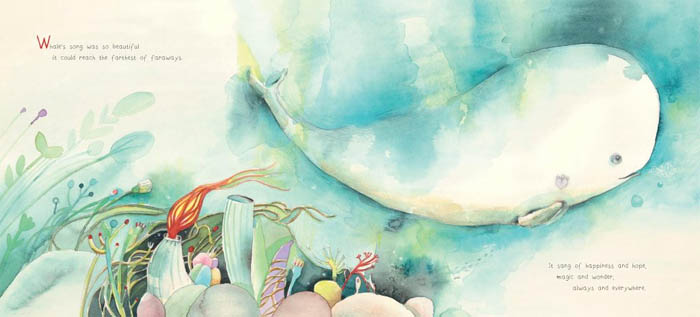 Whale's beautiful song winds its way through the ocean, reaching the farthest of faraways. His song is one of happiness and hope, magic and wonder--and Whale's fellow sea creatures are calmed, cheered, and lulled by it. But though Whale sings his tender song day after day, night after night, Whale wonders why he has no song to fill his empty heart. So when he lets out a mournful sigh, the ocean carries it like a wish through its fathoms, bringing it to just the right place.