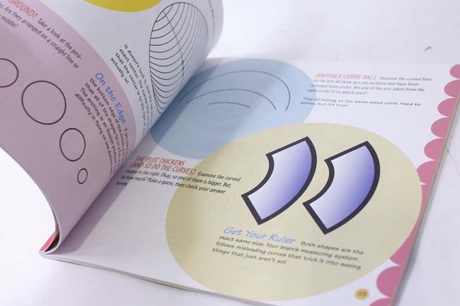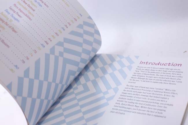 You won't believe your eyes, and perhaps you shouldn't. Once you read this book, you'll understand how your perception can be skewed by the way your brain processes certain input. Using information learned from previous experiences, your brain tries quickly to make order out of what you're seeing. Page after page of illusions will have you reaching for a ruler to see if lines really are the same length or if the sides of that square are straight or bowed. Author DiSpezio presents many classics, such as the ambiguous drawing that might be a vase and might be two faces, as well as some less familiar ones. There are even directions on how to make some of your own magic. A few pages are a little confusing where a busy background interferes with an illusion or the layout makes the text difficult to follow, but it is worth the extra effort to read carefully, because you won't want to miss any of these visual tricks. |