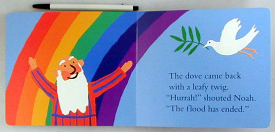 Lucy Cousin's artwork is delightfully distinctive and well suited to the visual sensibilities of young children. Her characteristic solid backgrounds showcase the fun ark and numerous animals. This very simple retelling of the Bible story is formatted as a board book for the smallest children. The original edition received Best Book of the Year Awards from Parents and Parenting magazines. 1997 (orig.