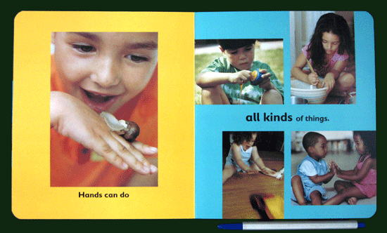 Hands can do all kinds of things! A rhyming text with eye-catching color photos offers just the encouragement young children need to explore their world - hands on.