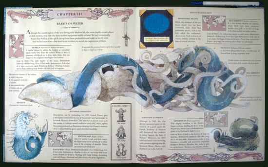 A big, colorful entry in the series that introduced readers to Dragonology (2003), Pirateology (2006), and Wizardology (2005, all Candlewick), this latest mock-nonfiction title explores such legendary beasts as kelpies, griffins, bunyips, and krakens. The smattering of "facts" revealed about these storied creatures, while based on Greek myths and the legends of other cultures, are generously fictionalized. The attractive illustrations, both color and monochrome, are done by several hands in 19th-century styles and provide a lot of detail for readers to get lost in. Although the book is not exactly circulation-friendly-it includes several faux documents that can be removed from the book-it should be a big hit among fantasy fans as a browsing item.