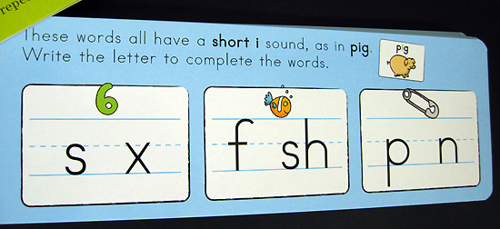 Phonics teaches early reading with fill-ins for long and short vowels and basic consonant sounds, letter scrambles, complete-the-words, and more.