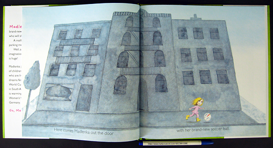 Sís cleverly fuses the ethnically diverse makeup of a Manhattan neighborhood with a fanciful scene of Madlenka and Cleopatra playing soccer with children from around the world.