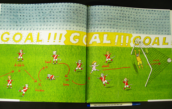 Sis's illustrations live up to his reputation, with the apartment buildings in muted shades of grey, standing protectively round the soccer field. A brief history of soccer follows the story of Madlenka, with a map of the countries where the sport is played, and with "soccer" translated into the word by which it is known in each country.