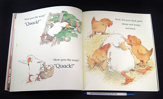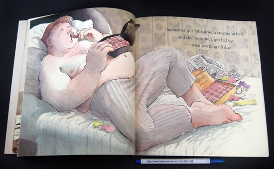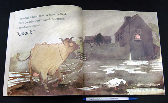 A poor duck has to do all the work on the farm while the fat farmer lazes his days away in bed. The other animals take pity on her, and together they oust the farmer and live in peace and harmony thereafter. Oxenbury's gentle illustrations of the oafish farmer, the visibly wilting duck, and the pastoral views are just right for the quiet story.