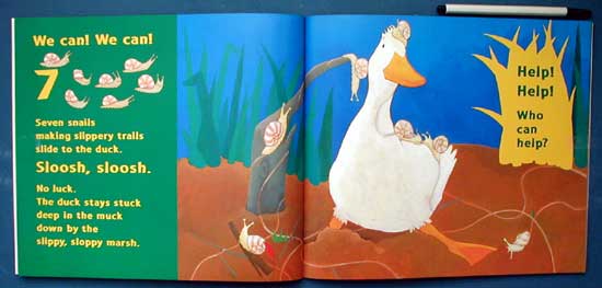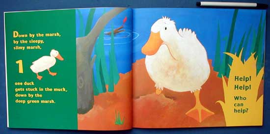 In this counting book, increasingly larger groups of animals try to help a duck that is stuck in the sleepy, slimy marsh.