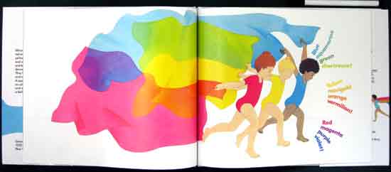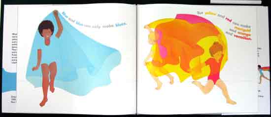 A dance theme, with children trailing and waving scarves of bright hues, teaches principles of mixing primary colors. The book opens with three figures, one dressed in red, another in blue and a third in yellow, each carrying a matching banner and saying, ``This is our dance.'' The only subsequent text presents color facts in simple sentences: ``Orange is red and yellow mixed together. No blue.'' On the page, the scarves demonstrate the stated concepts. The blue tone is not a medium blue, and the red is more of a dark rose, so this book does not introduce what is traditionally considered to be the true color spectrum, nor does the structure of the lesson make a vivid impression. Where the text says, ``Red and blue can make magenta, and purple, and violet,'' the illustration does not successfully show more than one color. The idea that ``blue and blue can only make blues'' may be confusing to readers, who can clearly see that, at a minimum, there are lighter and darker shades of blue. Because of some of the vagaries of the concept, this remains little more than a teaching tool. All ages.