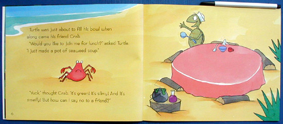 It's slimy. It's smelly. Its green and it's gooey. It's seaweed soup; and its Turtle's favorite lunch!Turtle has made enough seaweed soup for everyone. But it looks awful and smells worse! Nobody wants to even taste it. How can they tell Turtle without hurting his feelings?As Turtle serves lunch to his reluctant guests, young readers can learn about matching sets (also called one-to-one correspondence) by keeping track of all the different bowls, cups, spoons, and napkins on the table. Lighthearted art and a surprise ending make this a story readers will eat up.