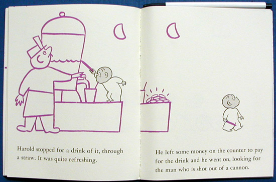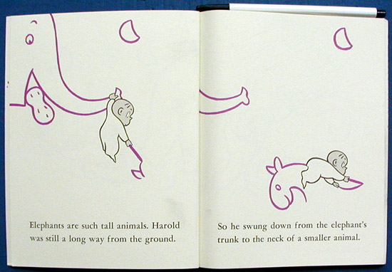 Purple crayon in hand, Harold draws a tightrope and falls into a circus [where he has many adventures]. As in the previous books, the dauntless Harold is resourceful and loveable." SLJ.