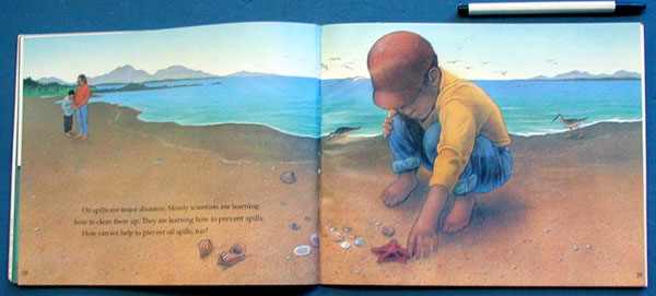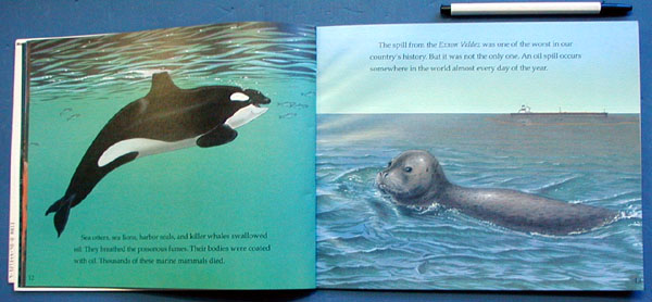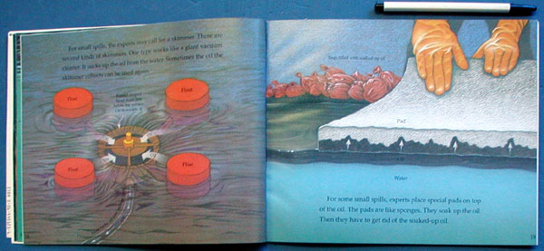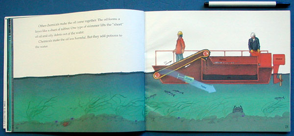 Ages 5-8. Beginning with the events and effects of the Exxon Valdez disaster, Berger introduces children to the causes of oil spills, the ecological damage they cause, and the ideas and technologies developed to deal with them. Although the text is simple and clear, it's sometimes choppy: "Chemicals make the oil less harmful. But they add poisons to the water." Does cutting the sentence in two and treating the subordinate clause like a sentence really make it easier to read? Subtle in texture and deep in tone, the colorful artwork effectively illustrates marine animals and oil tankers; there are also diagrams of cleanup operations, maps, and fanciful ideas (the "1,000 big swimming pools" that could be filled with oil spilled from the Exxon Valdez). The book ends with suggestions for preventing oil spills, from conserving energy at home to writing letters to members of Congress requesting better oil transport legislation. From the Let's-Read-and-Find-Out Science series, a good introduction to the subject. See Lauber, below, for another series title. Carolyn Phelan