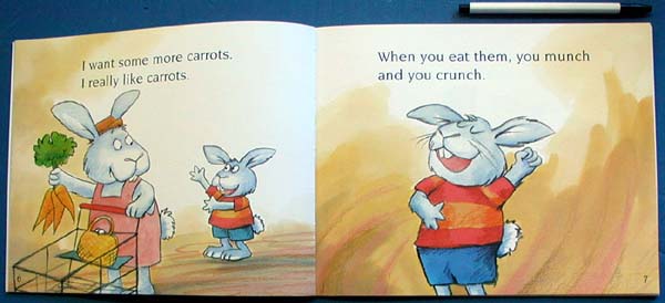 Elephants, rabbits, and birds shop in this funny grocery store. Can you guess what the little rabbit wants more of? Munchy, crunchy carrots, of course! And fewer of? Squirmy worms and chewy peanuts (yuck!). So why is his mother buying all those cans of worms?