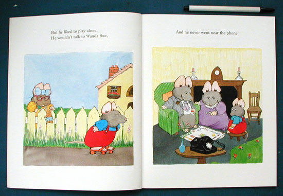 Charles is as quiet as a mouseand it doesn't bother him one bit. His rodent parents try everything from bribery to scolding, from ballet to football, but Charles resists all of their efforts to make him become more outgoing. It isn't until he is faced with the emergency of an injured babysitter that he springs into action and saves the day, only to revert to his shyness when his parents return. Wells' illustrations, in the familiar style of her Stanley and Rhoda (1978) and Hazel's Amazing Mother (1985, both Dial) show the plump, large-eared cast to be full of charm and cleverness. Facial expressions, posture, and background details substantially extend the humor of the story. The simple rhythm of the rhyming text is subtle and playful. It is refreshing that Wells offers no sudden transformation of Charles, nor does she propose any easy solution to his situation. Instead, she present a welcome portrayal of a common trait in young children with empathy and respect.