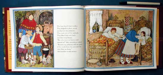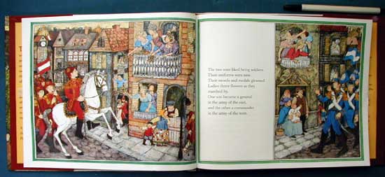 Anita soon discovered that she could combine the exuberance of her decorative fabric designs with the narrative form of picture books. There have been many books over the years, including pictures for texts by various writers; collaborations with Arnold,such as On Market Street and The Rose in My Garden; and her own adaptations from Scandinavian folk stories (King Rooster, Queen Hen; The Pancake; The Straw Maid).