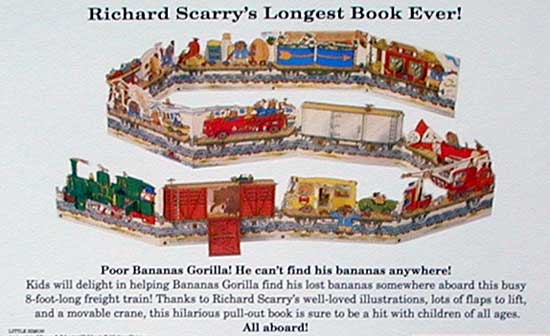 Kids will delight in helping Bananas Gorilla find his lost bananas somewhere aboard this busy 8-foot-long freight train! Thanks to Richard Scarry's well-loved illustrations, lots of flaps to lift, and a movable crane, this hilarious pull-out book is sure to be a hit with children of all ages.