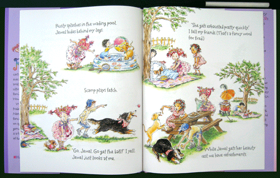 Fancy Nancy fans will loudly cheer her return and will be happy to discover that she has not lost a lick of her joie de vivre뾬r her glitter and glam. "I am ecstatic. (That's a fancy word for happy)," she announces, explaining that her family is getting a puppy, "a real one," she adds, as Glasser creates a comical scene of Nancy drafting her sister into the role of pretend-pooch (drawing on a noise with indelible marker). Nancy initially hopes for a dog like Jewel, the papillon that belongs to her elegant neighbor. But Nancy's practical parents think this breed is too small and delicate, and instead suggest hardier dogs; "I shake my head. Too big. Too brown. Too plain. Sometimes it's hard being the only fancy person in the family." Yet when she dog-sits for Jewel, she discovers that the prim and proper pooch does not enjoy romping or fetching like Nancy's friends' dogs. She realizes that Jewel's breed is not the perfect kind for her family. Her parents' idea to visit an animal shelter, however, brings about the perfect solution. Nancy spies spirited and smart Frenchy ("a La Salle spaniel," according to her father), who turns out to be just what the family needs. Glasser's fittingly fancy flourishes and abundant humor once again capture this young heroine's exuberant personality and delightfully exaggerated facial expressions. Author and artist make a sparkling encore performance.