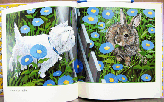 One day in the garden, McDuff spied a fat rabbit! Zoom!
