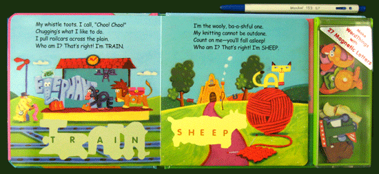 Heres a delightful way for young children to interact with Word World characters and visit the whole engaging landscape they inhabit, from the barn with fields and Sheeps hay stack to Bears Cave and Dogs house on the edge of the forest. How does one get there? By Car, Boat, or Train, of course!