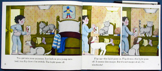For all those kids who ask parents how the light switch works and what electricity is, this is a great book. It explains how electrical energy is produced and offers a simple experiment that kids should be able to conduct. Berger next describes how this energy flows to each house and the source of this electrical energy. Diagrams depict the circuitry outside and inside a home and illustrate the function of switches and electrical outlets. A close up diagram shows a light bulb and how it works. There is even an experiment on the closing page that will let kids produce an electrical current. An excellent choice for home and school and a level 2 book in the "Let's-Read-and-Find-Out Science" series.