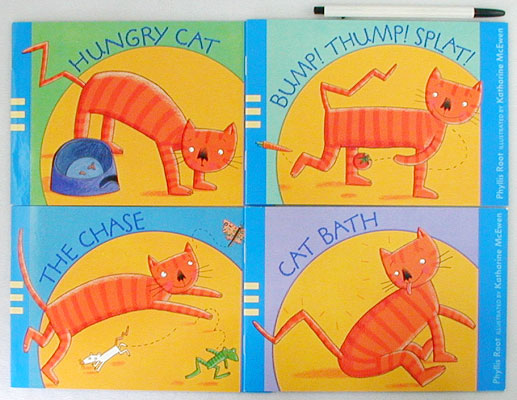 Four brief stories, using simple words, tell about Tabby Cat's adventures.