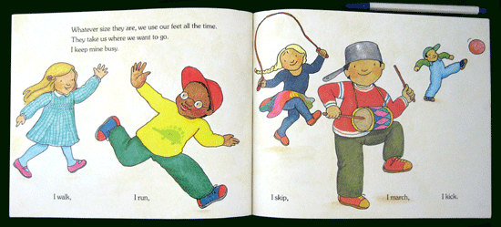 We use our feet all the time! With her trademark simple words and delightful pictures, Aliki explains the many ways our feet are important to us. Our feet hold us up, help us balance, and most importantly, take us wherever we want to go.
