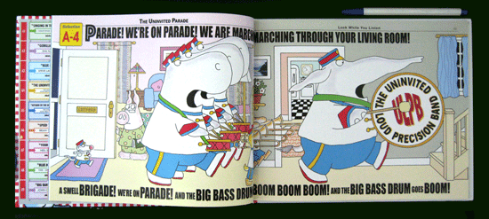 Boynton is at it again, celebrating music with a CD/book kit that's filled with lots of '50s-style fun. She's urging her audience to gather 'round for "17 Jukebox Hits from Way Back Never," sung by a cast of recognizable names from that era. Well, they'll certainly be recognized by the grandparents, anyway. But grandparents, parents, and children alike can enjoy this collection as they listen to such classics as "One Shoe Blues," sung by none other than B.B. King; "Blue Moo," sung by Steve Lawrence; and three numbers by "The Uninvited Loud Precision Band." There's "Speed Turtle," sung in pure Beach Boys-style by Brian Wilson; "With You," a '50s-style love song by Bobby Vee; and "Rabbit Tango," performed with great verve and panache by Patti Lupone. "About the Singers" includes a photo, biography, and past hits for each artist, even those who are fictitious. Each song is labeled in jukebox fashion: A-1 through A-14. As she did with Philadelphia Chickens (Workman, 2002), Boynton has combined a roster of celebrity singers, good humor, and lots of creativity for a gift of music and fun for every member of the family.