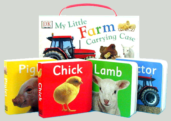 Babies love looking at farm animals, and the four books in this bright, appealing carrying case chick, lamb, piglet, and tractor will capture and keep the attention of even the liveliest toddler, providing hours of safe and informative play. Illustrated with beautiful photographs of adorable baby animals, noisy machines, and more, these four sturdy board books will help children develop vocabulary and visual identification skills as they learn about the things that happen on a farm.