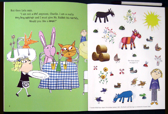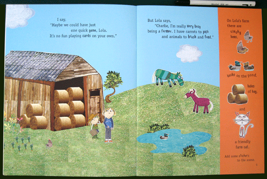 Charlie really wants Lola to play cards with him, but she is far too extremely busy meeting the demands of her many (pretend) careers . . . one moment she is a chef with a stack of orders to fill, and the next she is a doctor with a waiting room full of sick patients. But when Lola is told to tidy their very messy room, she soon discovers that doing things with her brother is ever so much more fun than playing solo.